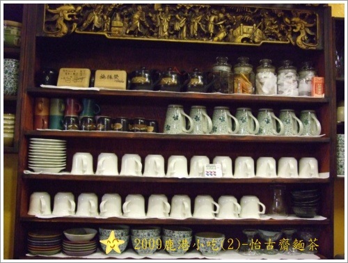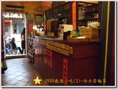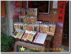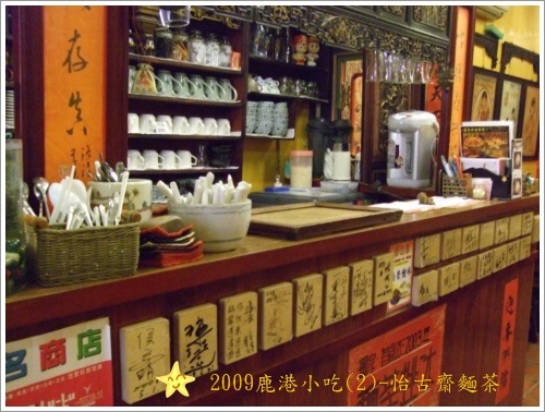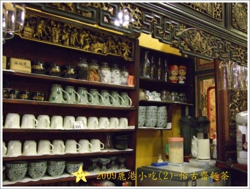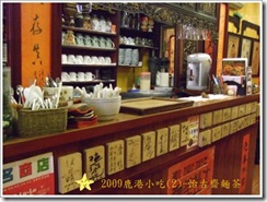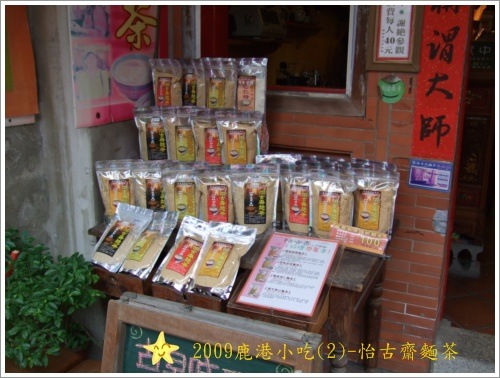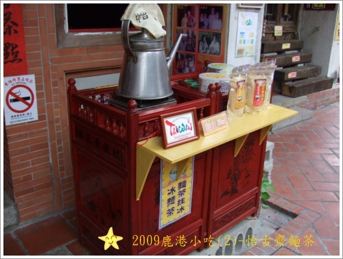 門口擺放了各種口味的麵茶…有古時候的沖茶器具…