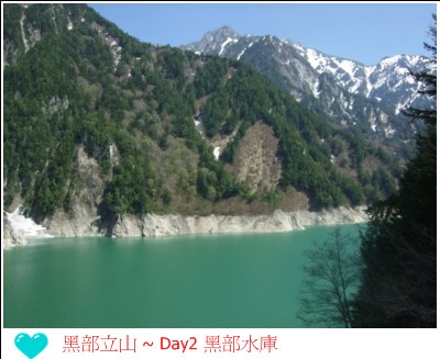 太美了~~下面就是黑部水庫..配合還有白雪的山峰...