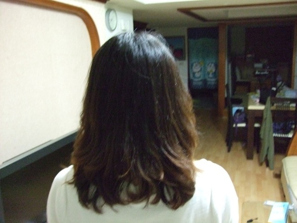 後面看起來好像太長了一點….原來我的頭髮已經不太捲了…