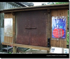 許願池與防爆門.防爆門據說是彈藥庫的防爆門,前面為鐵質,後為鋼筋水泥的厚質門板.