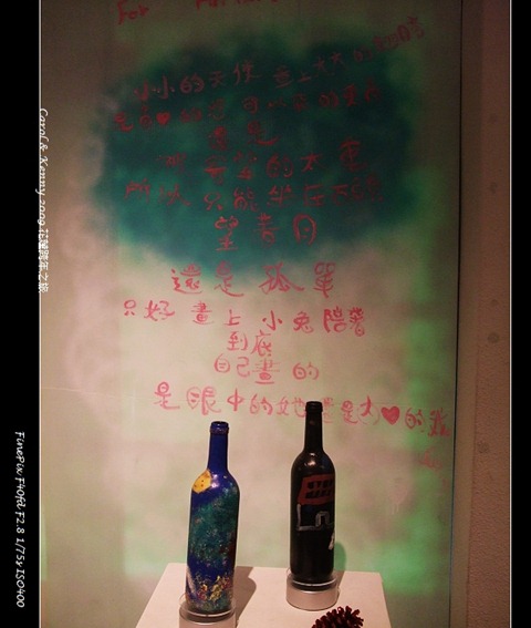 好多利用酒瓶做出來的作品,好特別,不只是畫展.這應該也算裝置擺置藝術吧!!