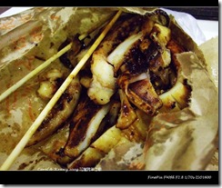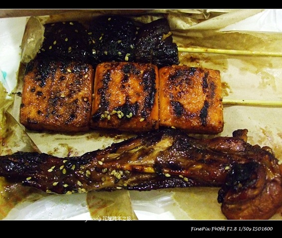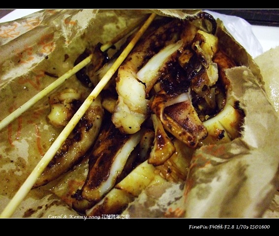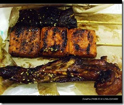 烤肉看起來焦焦的,會不會苦阿!! 完全不會,好好吃.香菇豆乾烤得剛剛好.魷魚有點乾魷魚的香味,但不會硬,適中.雞翅也很香很好吃.難怪是頗富盛名的烤肉阿!!