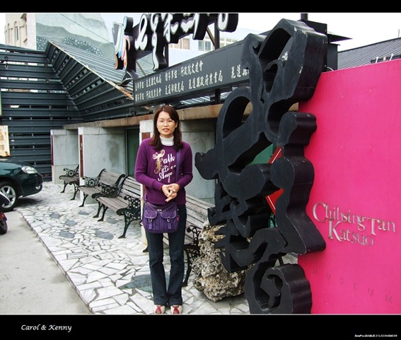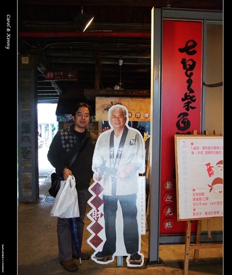 阿北跟宗泰食品董事長的人形立牌拍照.(這樣買麻糬有比較便宜嗎? 哈!)