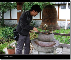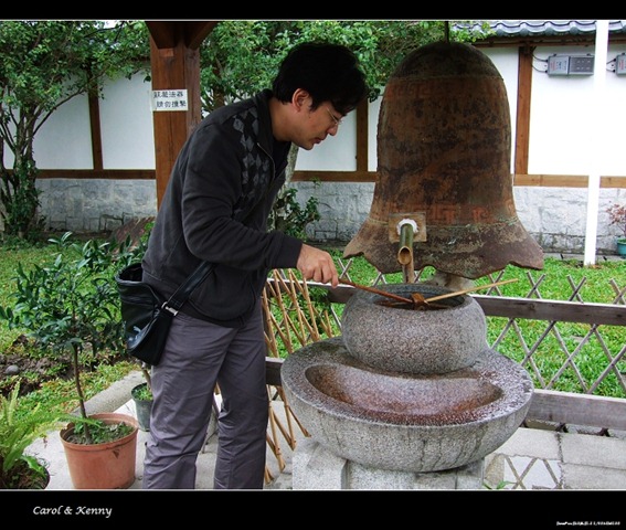 進去一點有鐘. 與日本的廟宇都設立的淨手台.