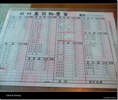 菜單很環保,寫在塑膠套子上,可以擦掉重複使用.