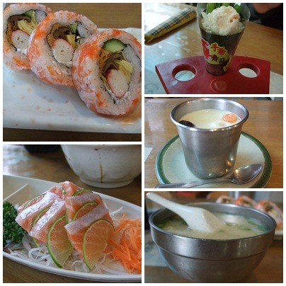 花壽司$60, 蘆筍手捲$30,茶碗蒸$30,味增湯$15,鮪魚生魚片$100