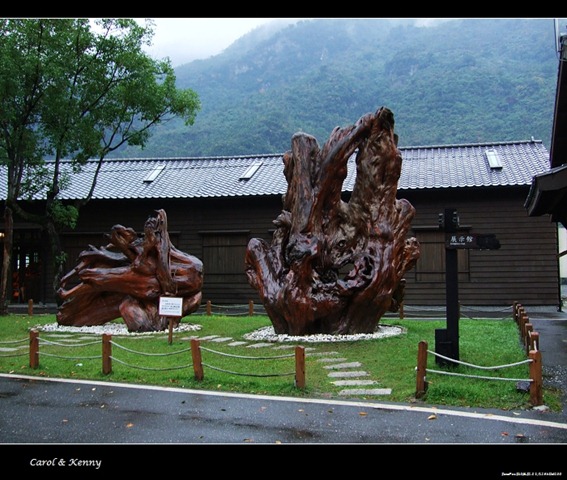 離開展覽室.不遠處看到比屋子還高的木雕作品,真大.