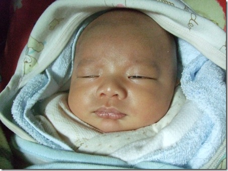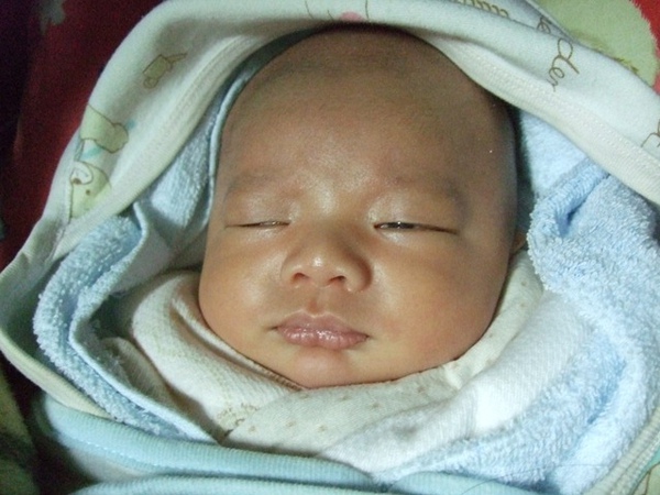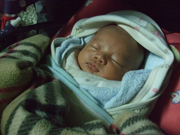 我們剛來時…還睡得很安詳…我們一旁聊天..完全不會吵到他…好乖的孩子喔~~
