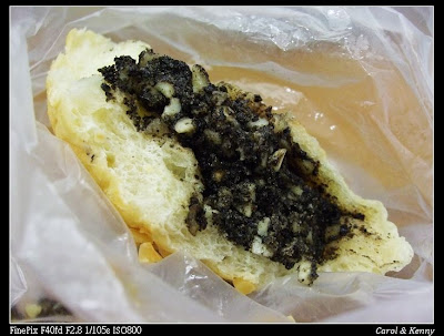 麵包裡面的芝麻餡料不少,除了芝麻外,還有軟硬適中的果子切片.(不知道這是什麼?)