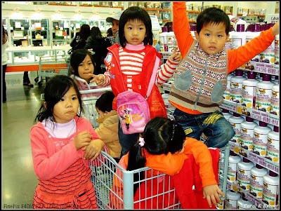 或者說…他們很愛坐量販店的購物車…呵呵~~