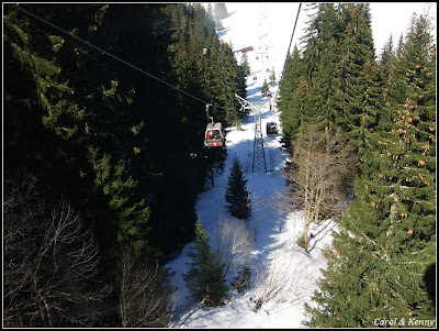 歐洲人看到,又擠了兩個人進去,可能他們環保吧!!不浪費資源.小纜車外掛滿了滑雪設備.