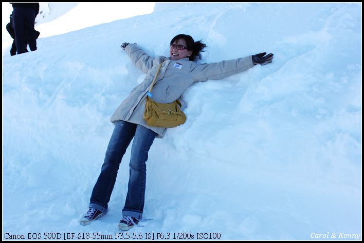 寫字篇:看的到字嗎?上面寫著Carol,好軟的雪喔~~