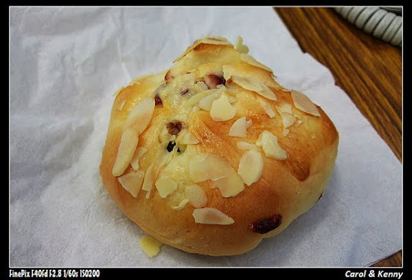 這次的上面撒著杏仁..蔓越莓..中間好像還有檸檬口味的起司嗎?