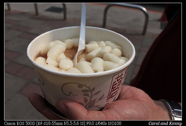 不便宜喔~~ 一碗50元~~還不錯吃..淡淡的桂花香..湯圓QQ的…底下有三種水果…有點小貴到是..