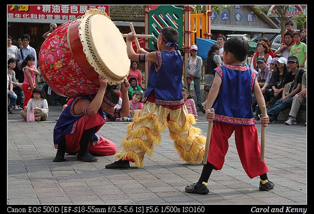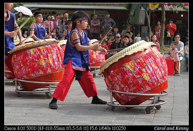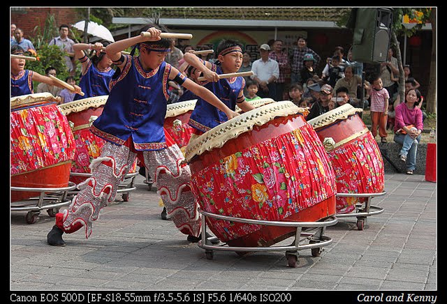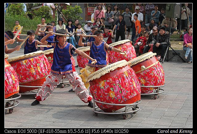 鬥鼓…幼稚園的小朋友硬是跟團長要求要獨Show…偏偏力氣不夠大..打到後來沒力氣..真是好可愛喔~~