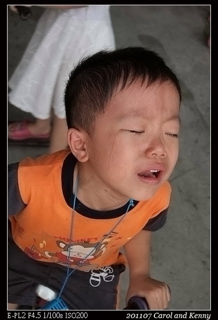 哭了..因為姊姊說..他騎太慢…被淘汰…