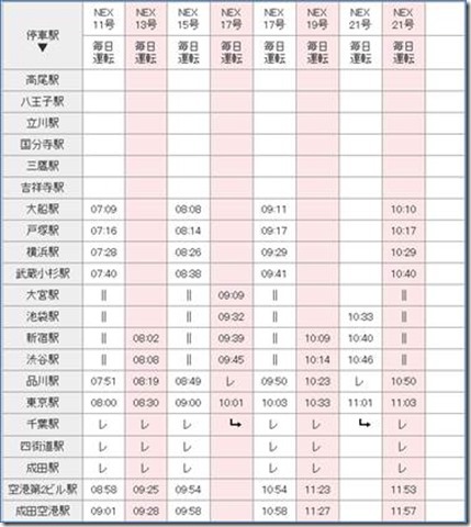 (成田機場售票處提供服務的時間:第1侯機樓為7:00~22:00 第2侯機樓為7:00~21:00)