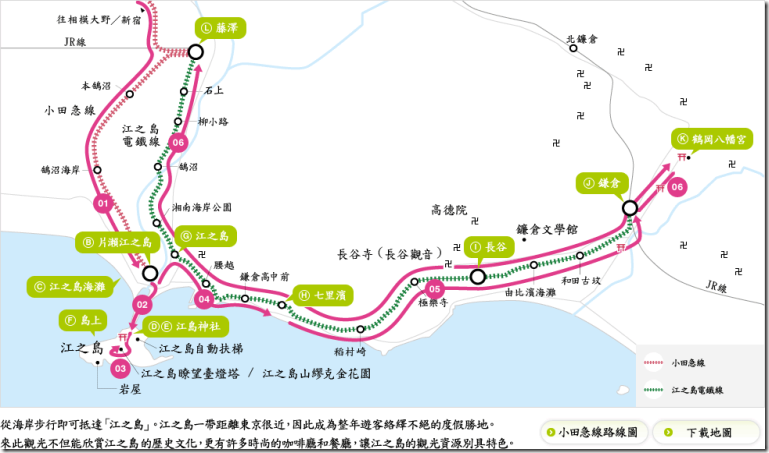 東京新宿車站 è 片瀨江之島車站 è 江之島海灘 è 江島神社參道 è 江之島神社鳥居 è 江之島眺望燈塔 è 島上美食 è 江之電 江之島站 è 江之電 七里濱站 è 江之電 長谷站 è 江之電 鎌倉站 è 鶴岡八幡宮 è 江之電 藤澤站