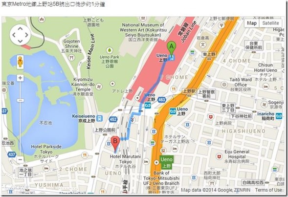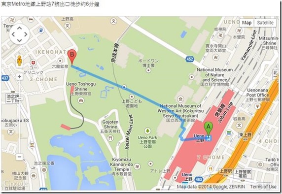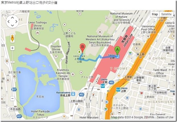 只要輸入起站(您的位置)→迄站(上野)就可以找到最快捷的到達方式了